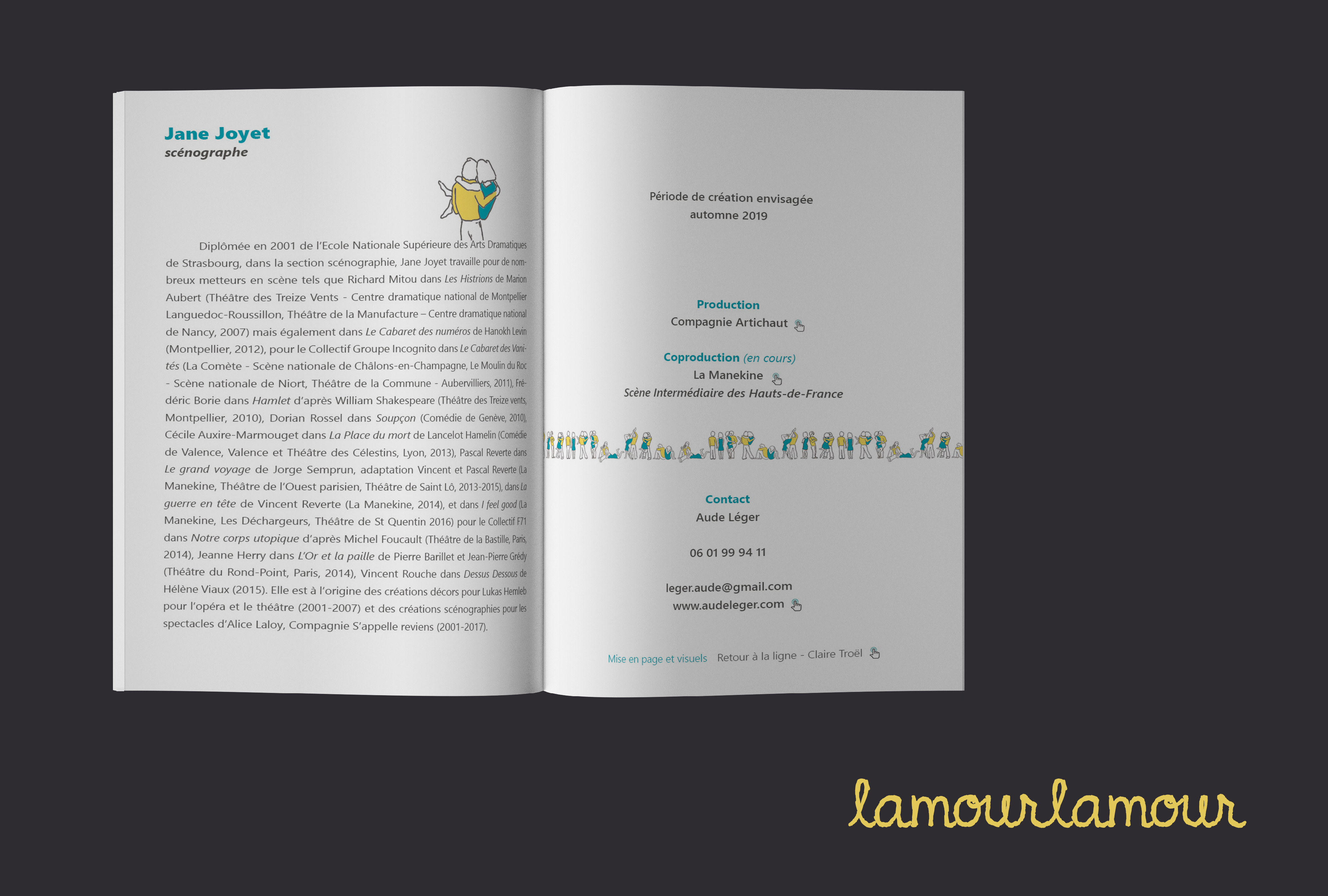 Edition Brochure commerciale, société INGECO – ingénierie de la construction Brochure commerciale complèteTélécharger Dossier dramaturgique d’un spectacle musical. Avec l’aimable autorisation d’Aude Léger. Lien pour la brochure complète Création graphique et mise en page d’un livre pour enfant : La Barbe Bleue (projet de recherche) Partager : Partager sur X(ouvre dans une nouvelle fenêtre) X Partager sur Facebook(ouvre dans une nouvelle fenêtre) Facebook J’aime chargement…